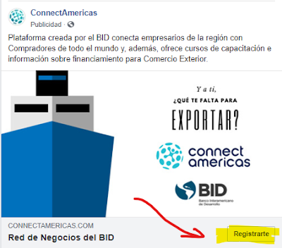 Connect Americas por ejemplo utiliza el CTA ‘Registrarte’ para que pueda ser parte de su red empresarial: