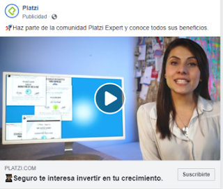 El texto de publicación para este anuncio de Platzi tiene la cantidad justa de información en sus 12 palabras:
